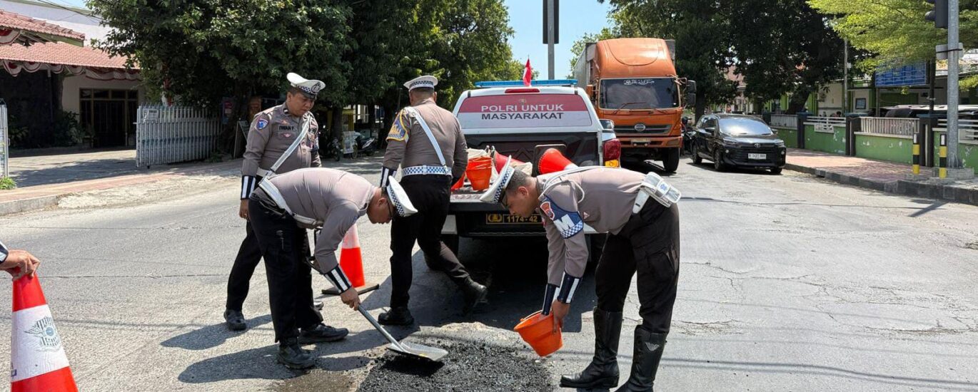Peduli Keselamatan Masyarakat Polantas Polres Situbondo Tambal Jalan Berlubang Cegah Laka