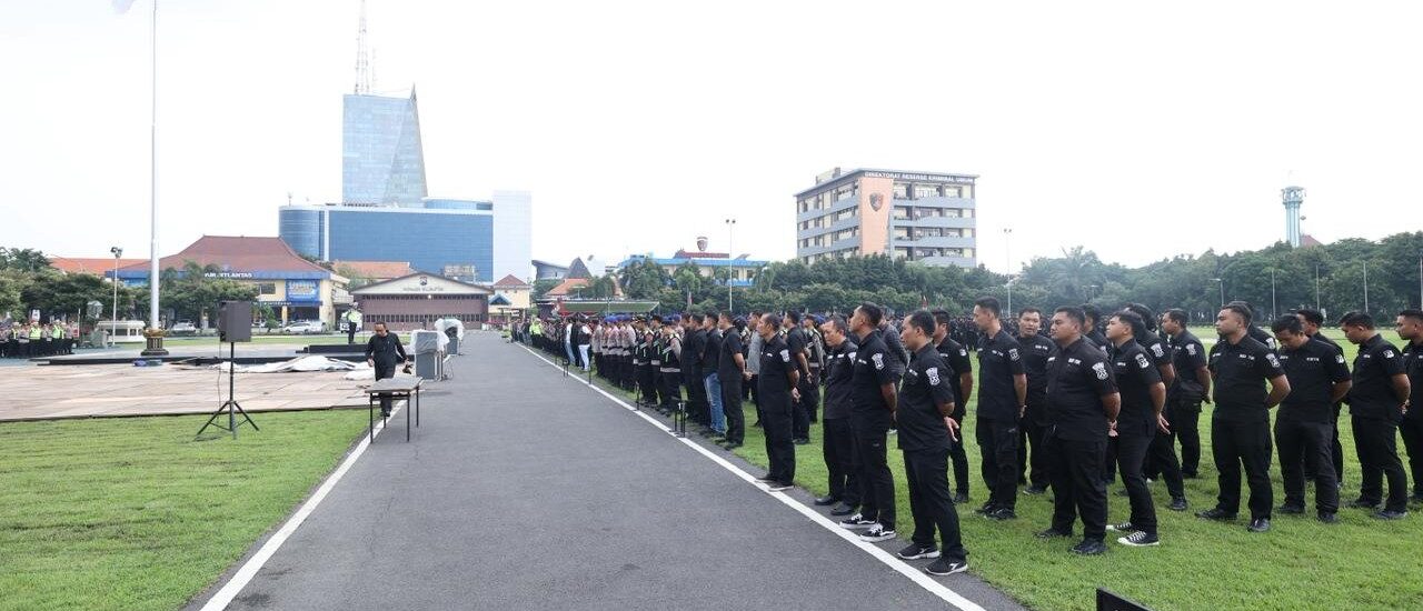 SURABAYA – Polda Jawa Timur menggelar Apel Gelar Siaga Malam Takbir 2026 di Lapangan Mapolda Jatim, Kamis (19/3/2026).