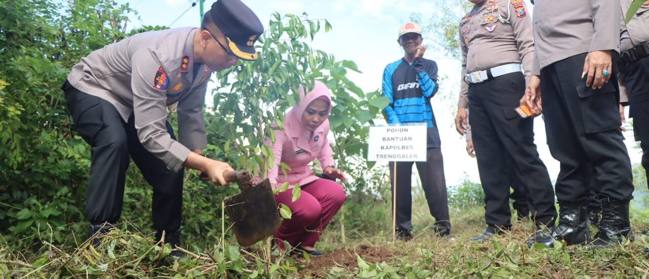 TRENGGALEK – Polres Trenggalek Polda Jatim menggelar aksi tanam ratusan pohon beringin di kawasan lahan kritis untuk menjaga sumber air di masa mendatang. Aksi ini dilakukan untuk memperingati Hari Bumi se dunia.