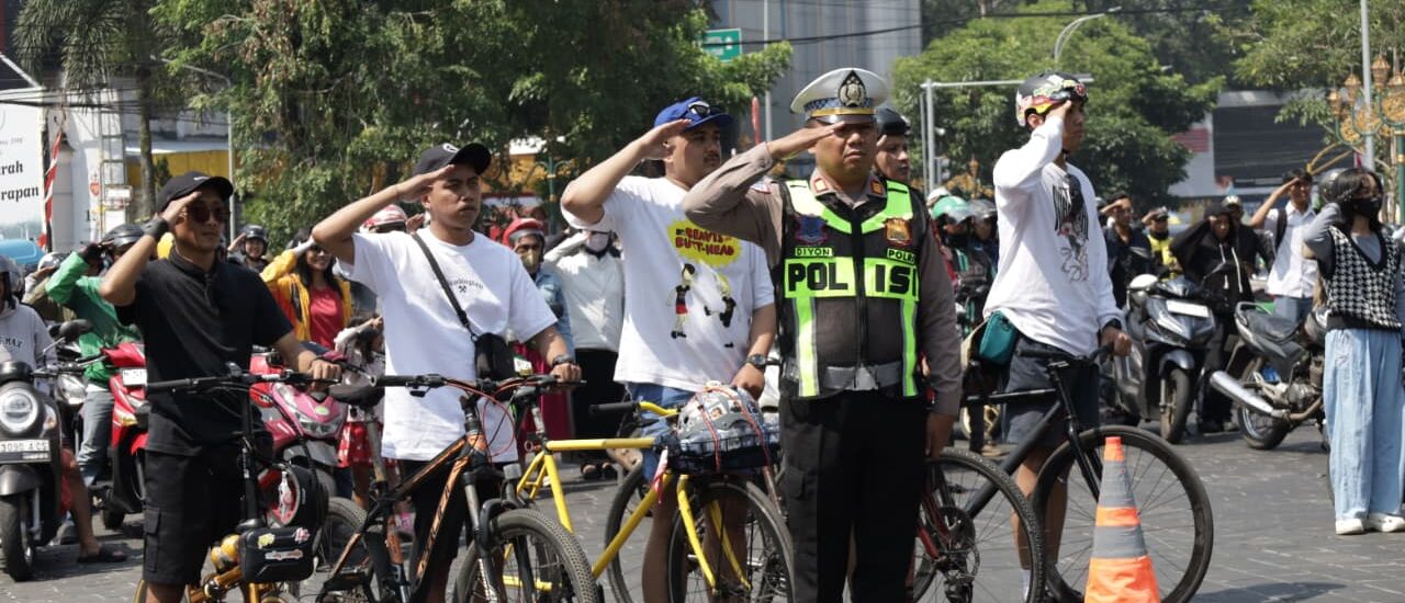 Satlantas Polresta Malang Kota Hentikan Arus Lalu Lintas, Ajak Warga Hormat Bendera di Persimpangan Kota
